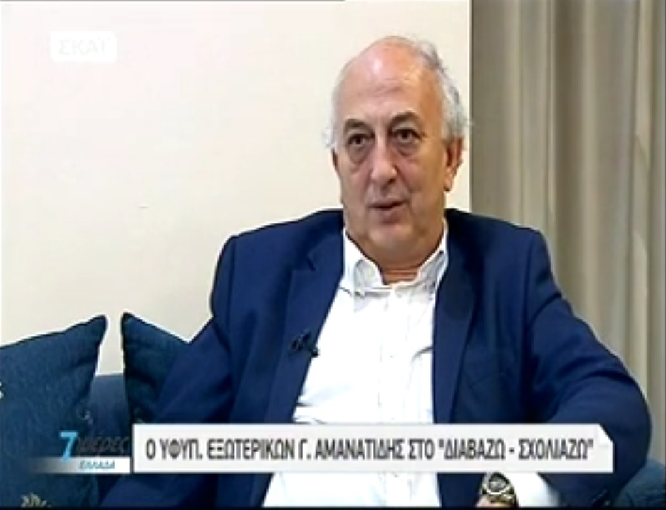 Ο Υφυπουργός Εξωτερικών Γιάννης Αμανατίδης στην εκπομπή του τηλεοπτικού σταθμού ΣΚΑΪ "7 ημέρες ΕΛΛΑΔΑ"