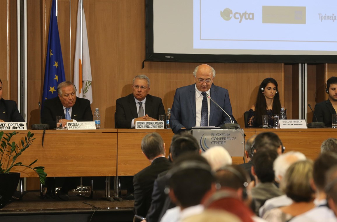 Με αισθήματα ιδιαίτερης χαράς βρίσκομαι ανάμεσά σας, τρεις μόλις μήνες μετά την πρόσφατη επίσκεψή μου στην Κύπρο, τον περασμένο Απρίλιο. Ταυτόχρονα, αποτελεί για εμένα ξεχωριστή τιμή να εκπροσωπώ την ελληνική Κυβέρνηση στην εναρκτήρια τελετή της 26ηςΣυνεδρίας του Κεντρικού Συμβουλίου των Οργανώσεων των Αποδήμων Κυπρίων (ΠΟΜΑΚ-ΠΣΕΚΑ) και να μεταφέρω, σε όλες και όλους σας, τον εγκάρδιο (πατριωτικό) χαιρετισμό του Πρωθυπουργού της Ελλάδας, Αλέξη Τσίπρα και του Υπουργού Εξωτερικών, Νίκου Κοτζιά.