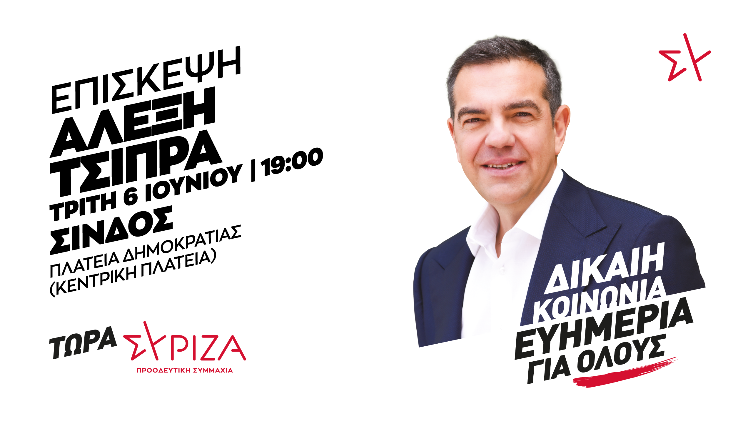 Ο πρόεδρος του ΣΥΡΙΖΑ – Προοδευτική Συμμαχία, Αλέξης Τσίπρας, θα βρεθεί αύριο 6 Ιουνίου στους νομούς Θεσσαλονίκης και Πιερίας.