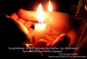 Να φυλάξουμε το φως της ζωής, της ελπίδας και της Ανάστασης εύχεται από καρδιάς, τούτες τις δύσκολες -εξαιτίας της πανδημίας- Άγιες ημέρες, ο βουλευτής Α΄ Θεσσαλονίκης του ΣΥΡΙΖΑ-Προοδευτική Συμμαχία, Γιάννης Αμανατίδης.