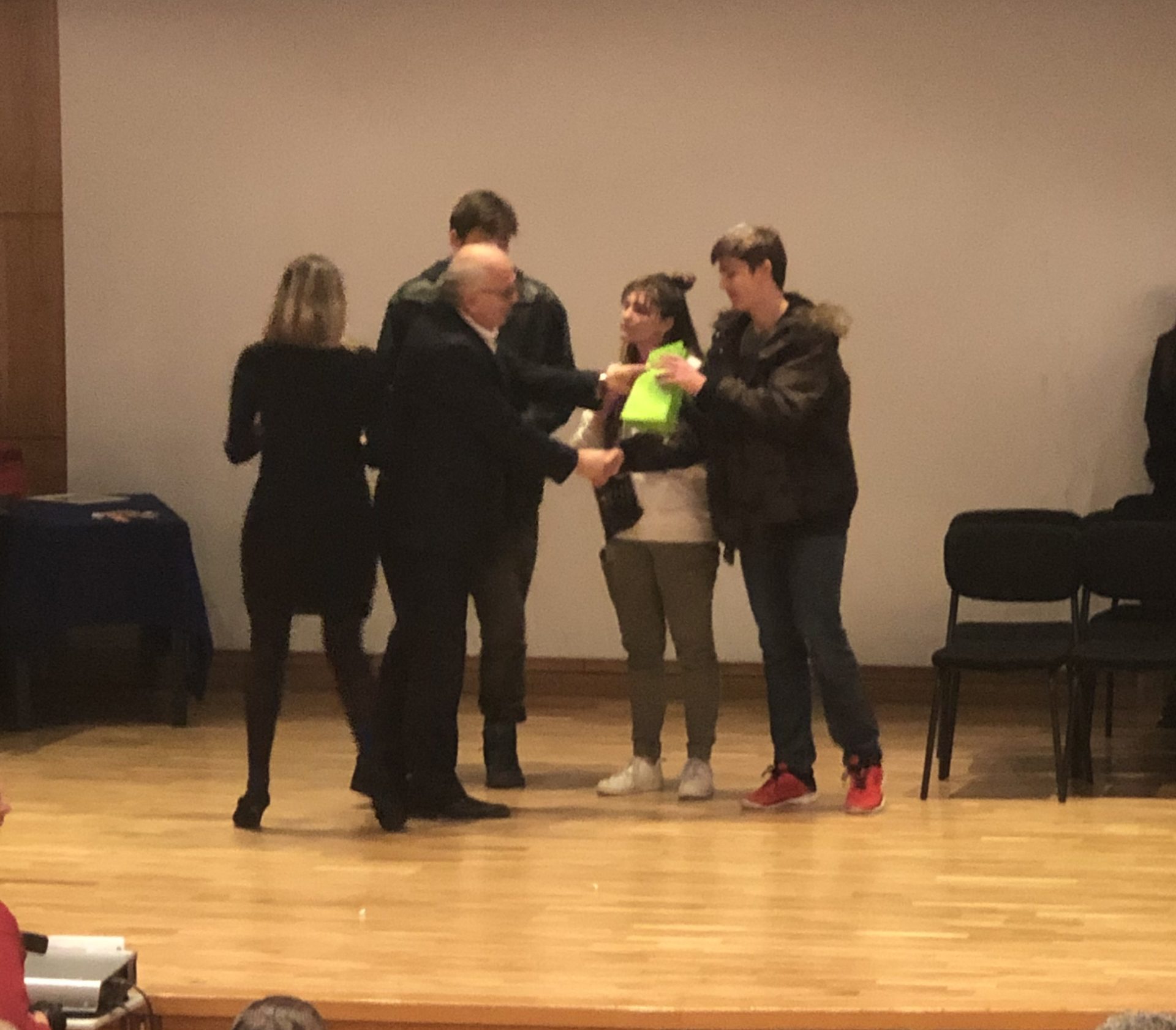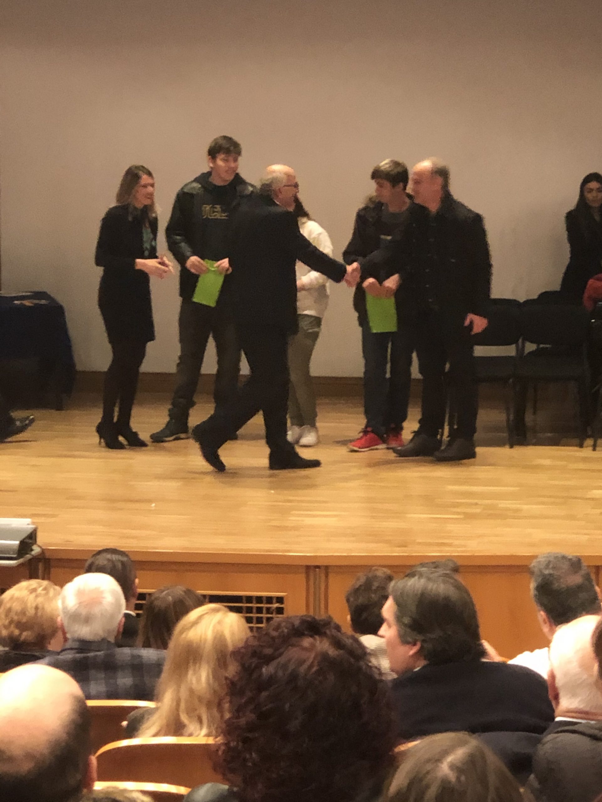 Μετά τον χαιρετισμό ο βουλευτής του ΣΥΡΙΖΑ απένειμε τα βραβεία στους διακριθέντες αθλητές καλαθοσφαίρισης της Α΄Λυκείου.