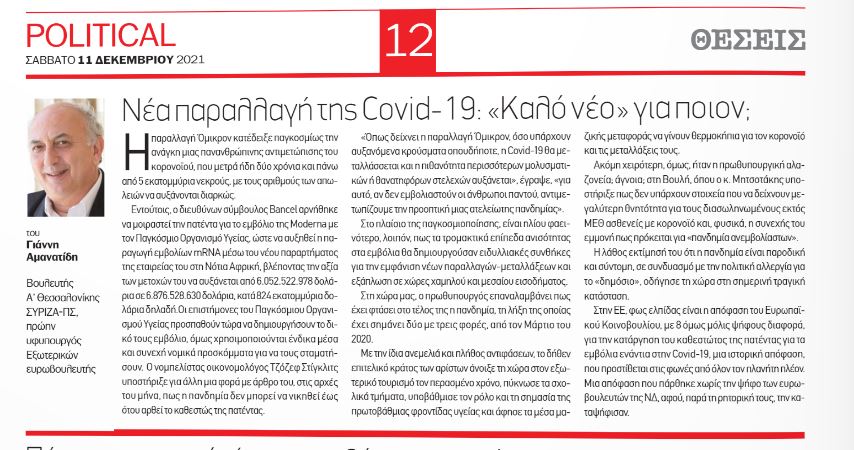Η παραλλαγή Όμικρον κατέδειξε, παγκοσμίως, την ανάγκη μιας πανανθρώπινης αντιμετώπισης του κορωνοϊού, που μετρά ήδη δύο χρόνια και πάνω από 5 εκατομμύρια νεκρούς με τους αριθμούς των απωλειών να αυξάνονται, διαρκώς.