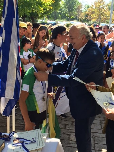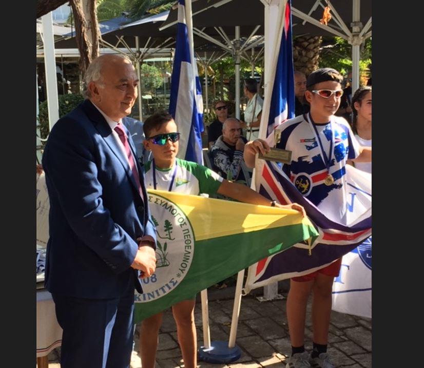 Ο πρώην υφυπουργός Εξωτερικών συνεχάρη τις αθλήτριες και τους αθλητές και απένειμε έπαθλα στους διακριθέντες του διασυλλογικού αγώνα κωπηλασίας που ήταν αφιερωμένος στη μνήμη της Κίτης και του Άλκη Σκλαβούνου.